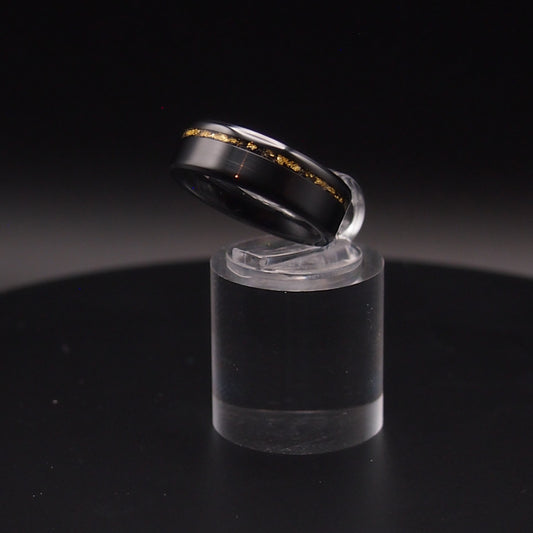 1/1 BLACK CERAMIC THIN INLAY RING SIZE 5 24K GOLD FLAKE AND AMBER